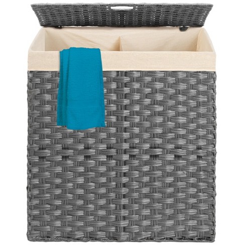 We use an array of different types of woods and woods used will vary per trash can. The double laundry hamper with lid and cloth liner is a great addition to any bedroom, laundry room, or bathroom. Seville classics handwoven oval double laundry hamper in grey. House again sturdy double laundry hamper with lid and removable laundry bags,2 large dividers dirty clothes basket with handles for bedroom, laundry room, bathroom, closet, college(black) house again $23.99 $ 23. You can even get a double laundry hamper to sort out your dirty clothes by color or fabric to make things easier.